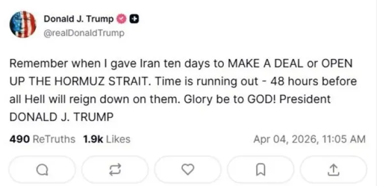 El presidente de Estados Unidos emitió una advertencia directa hacia la administración de Irán para exigir la apertura inmediata del Estrecho de Ormuz. El mandatario fijó un plazo de dos días antes de iniciar una ofensiva militar de gran escala.